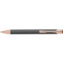Alumínium golyóstoll matt felülettel, rózsaarany részletekkel, kék tollbetéttel.