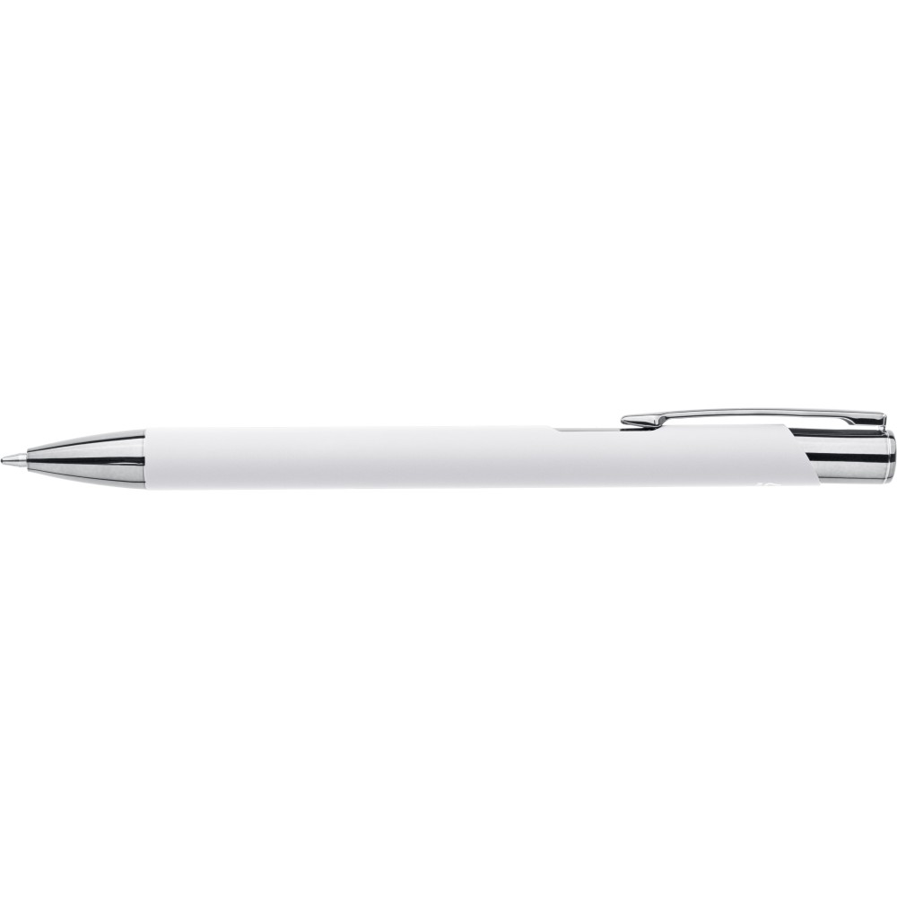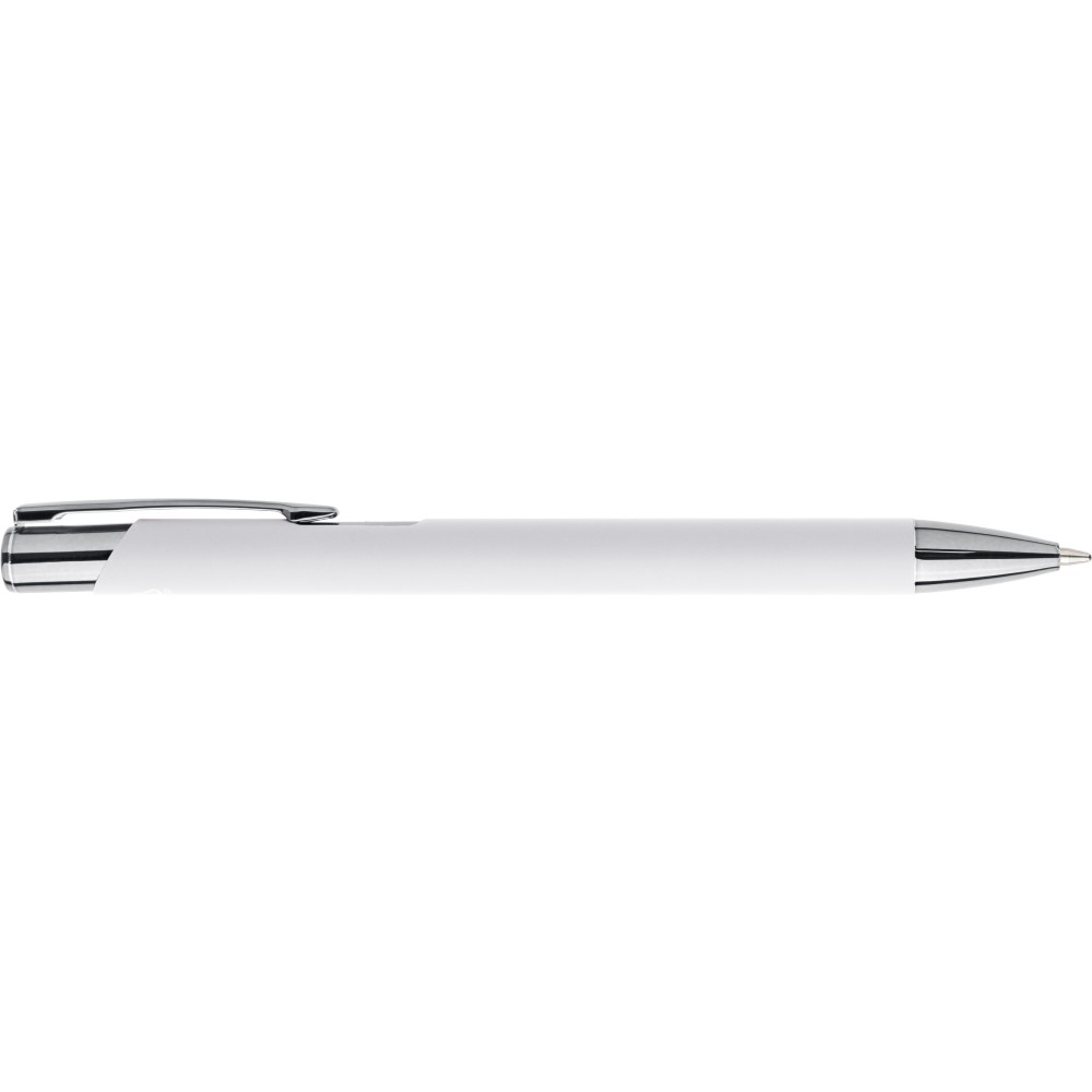 Újrahasznosított alumíniumból készült, gumírozott felületű golyóstoll, a toll színével harmonizáló UV-bevonatú műanyag és fém díszítéssel. Gravírozás után fényes tükörhatás jelenik meg. A tolltesten gravírozott recycled (újrahasznosított) alapanyagra utaló logó található. Megközelítőleg 800 méter íráshosszúságú, kék színű tollbetéttel.