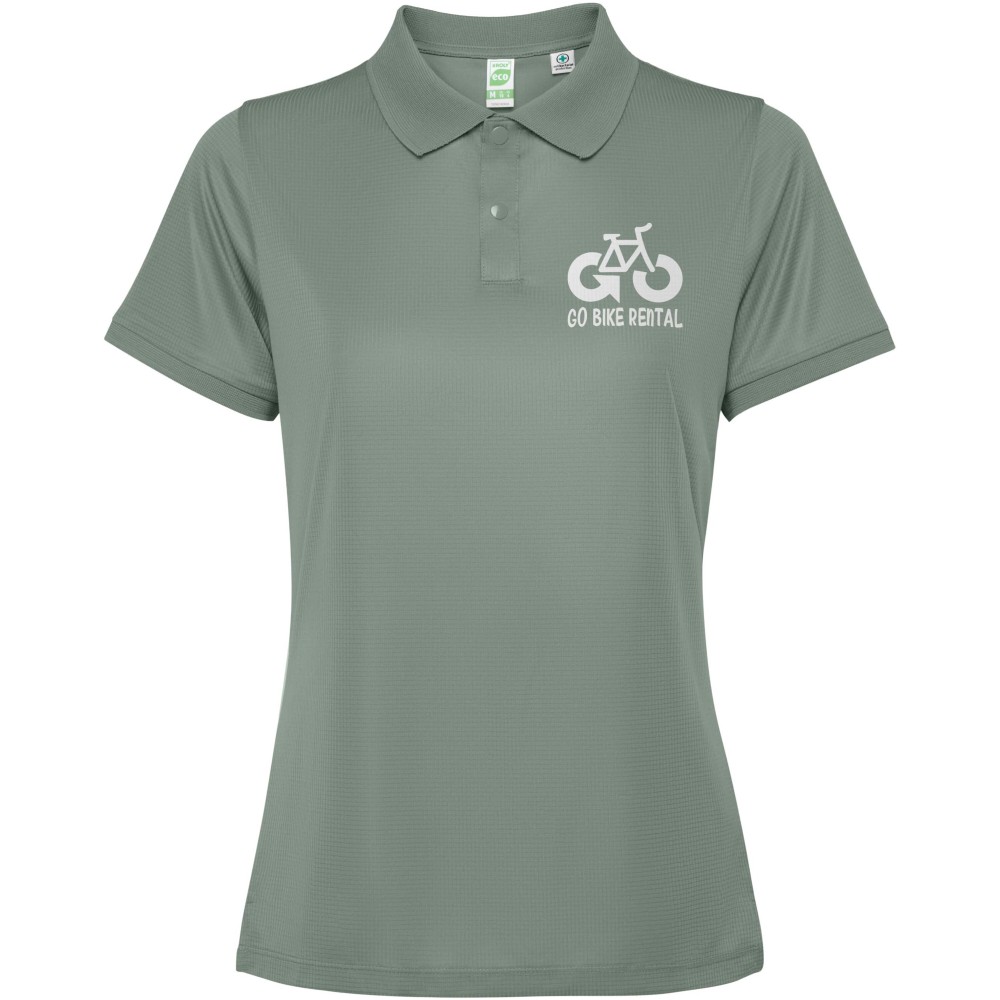 Rövidujjú galléros női póló. Erősített, fedett varrások a belső gallérban. 1x1 bordázott kézelő és gallér. Oldalsó varrások. 3 gombos nyakrész és oldalsliccek. 120g/m2.