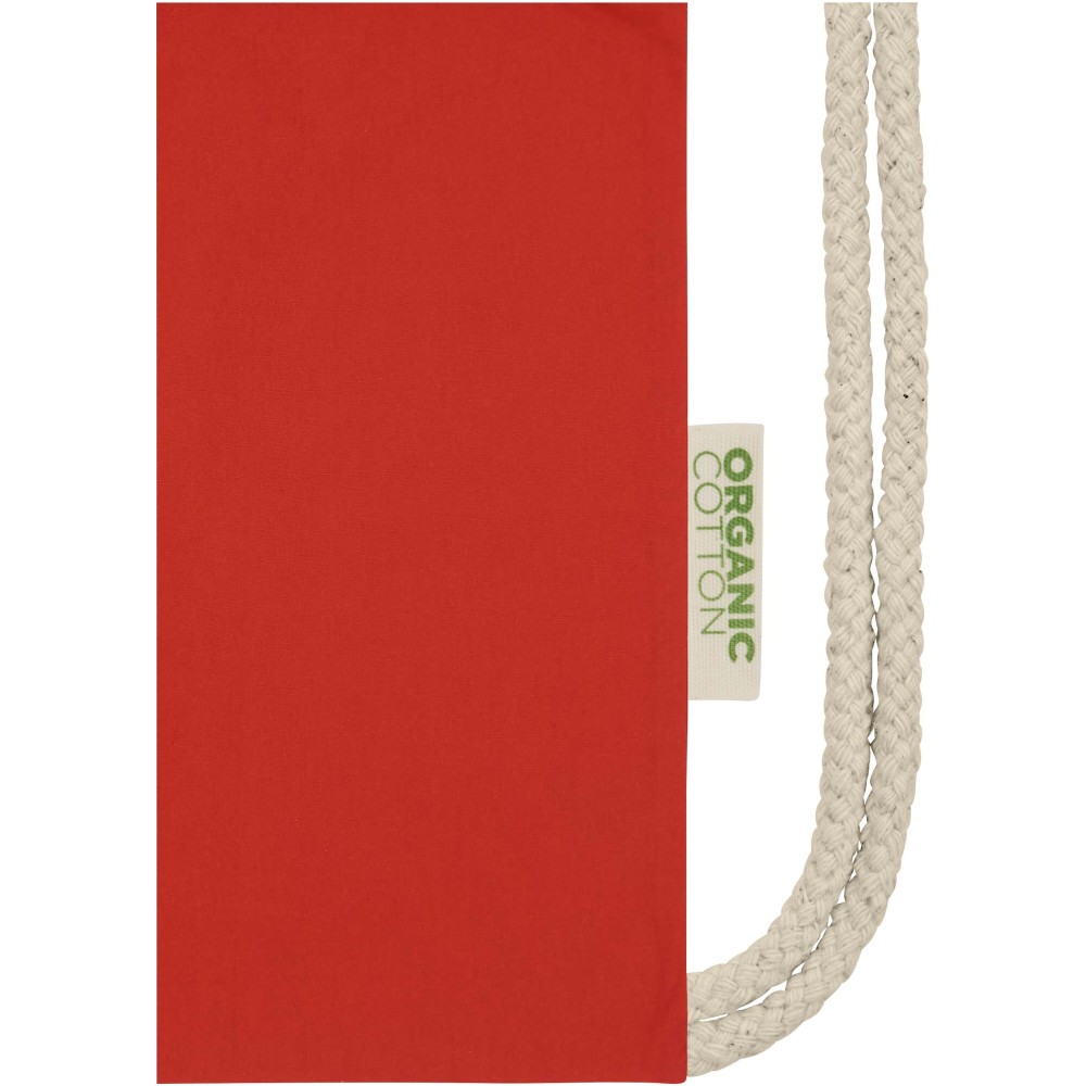 OCS tanúsítvánnyal rendelkező, 100% organikus pamutból készült húzózsinóros hátizsák környezetbarát és praktikus választás. A termék egy tágas főrekesszel és pamut zsinóros záródással rendelkezik, amely biztonságos tárolást garantál értéktárgyak számára. A táska teherbírása legfeljebb 5 kg. Űrtartalma: 5 liter. 140 g/m2 anyag.