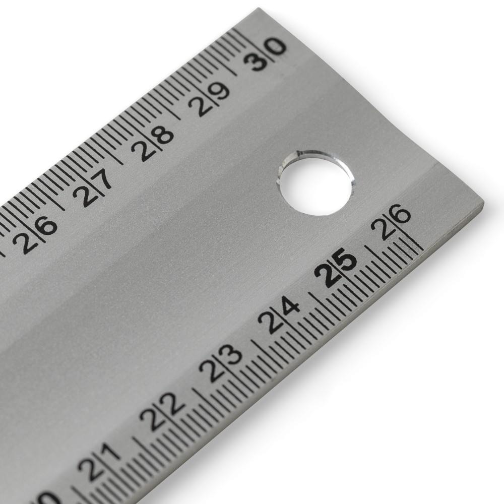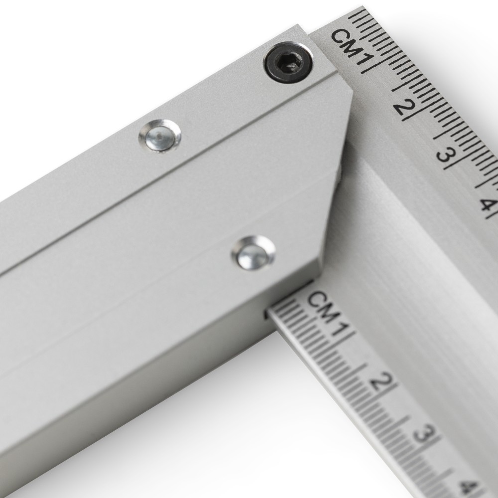 Alumíniumból készült derékszögmérő szintezővel, 30 cm hosszúsággal, centiméter beosztással. Praktikus kialakítás a pontos méréshez és szintezéshez. Darabonként illusztrációval ellátott barna kartondobozba csomagolva.