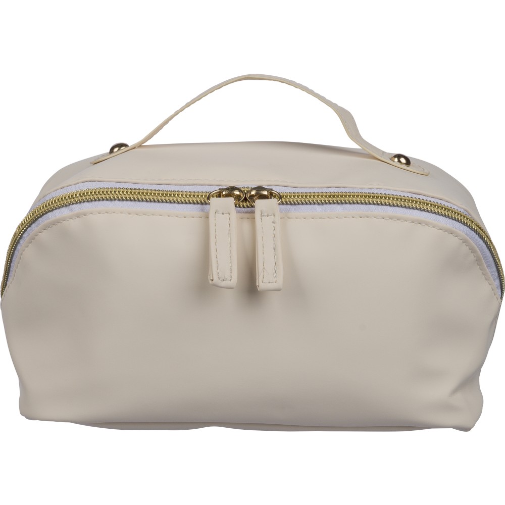Újrahasznosított PU anyagból készült neszesszer középen elhelyezett cipzárral a széles nyithatóság érdekében. Rövid fogantyúval, tágas belső térrel és négy rekesszel, beleértve egy belső cipzáras zsebet. 210D újrahasznosított béléssel készült, belsejében egy újrahasznosított alapanyagra utaló címkével.
