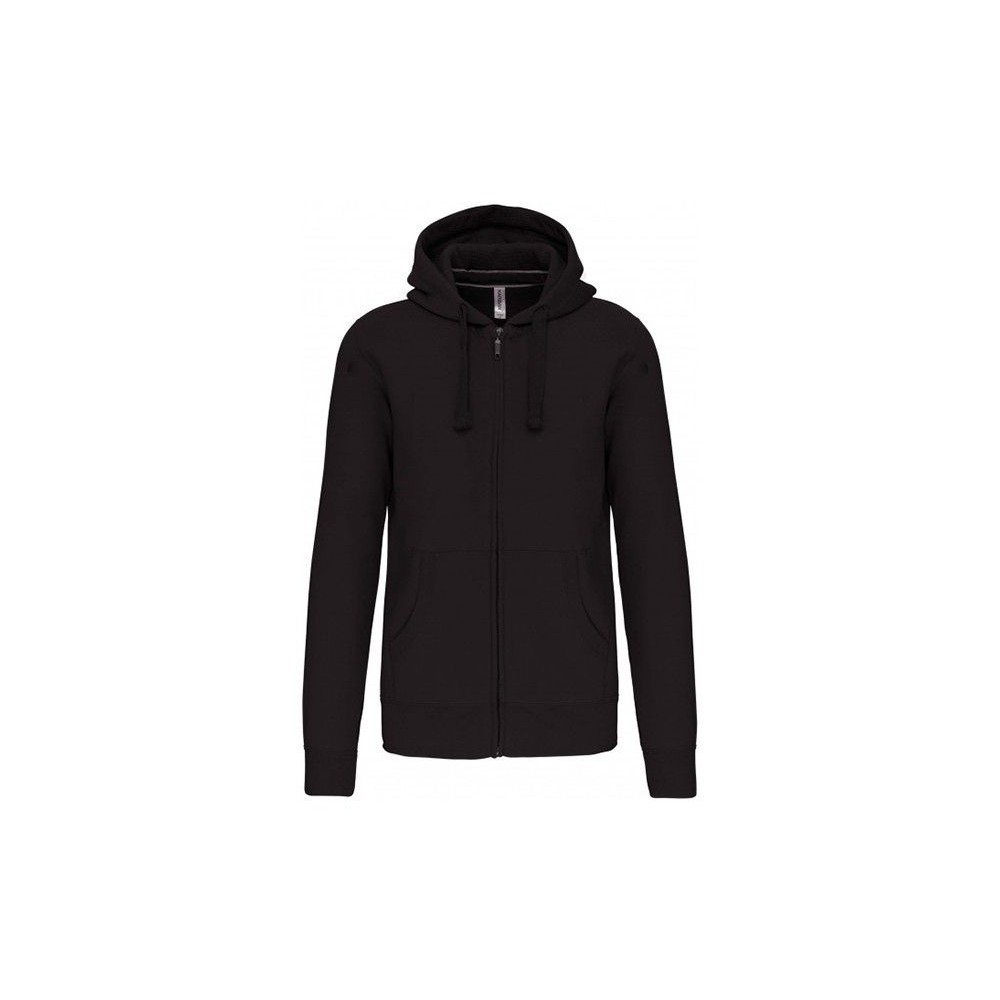 80% pamut és 20% poliészter. Belül bolyhos anyag, szürke színű szalagerősítés a nyakban, bélelt kapucni, kenguruzseb, bordás ujj- és derékpasszé, YKK cipzár. 300 g/m2.