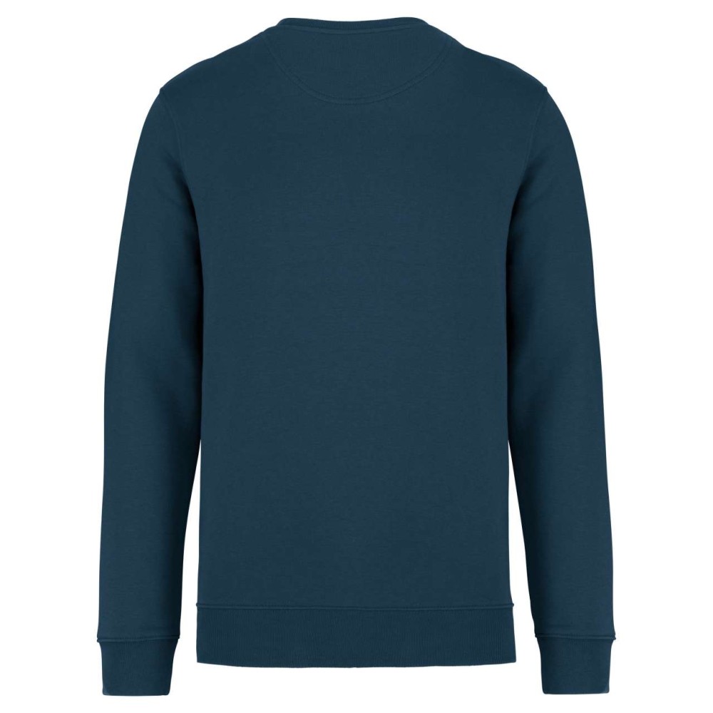 85 % bio, fésült pamutból és 15 % újrahasznosított poliészterből készült. Unisex. Egyenes szabás. LSF (Low Shrinkage Fleece: előzsugorított polár). Kerek nyakkivágás. Félhold alakú. Méretcímke organikus pamut és újrahasznosított poliészter logóval. 1x1 bordás nyakpasszé, alsó szegély és kézelő. Duplaöltés a kézelőn, karöltőben és kézelőn. Egyszeres felülvarrás a nyakkivágáson. Belső szalagozott nyakrész. A nyakrészen nincs márkajelzés, csak méretcímke a könnyebb dekorálás érdekében. A ruhadarabhoz kartonpapírból készült ismertetővel, amely felsorolja a felhasznált környezetbarát anyagokat. OEKO-TEX N CQ1007/7 STANDARD 100 tanúsítvánnyal rendelkezik. IFTH. 350 g/m2.