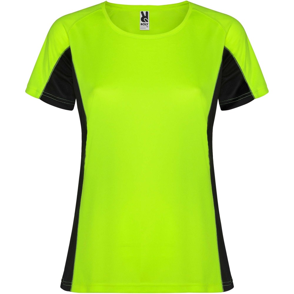 Roly Shanghai rövid ujjú női sportpóló, Fluor Green, Black