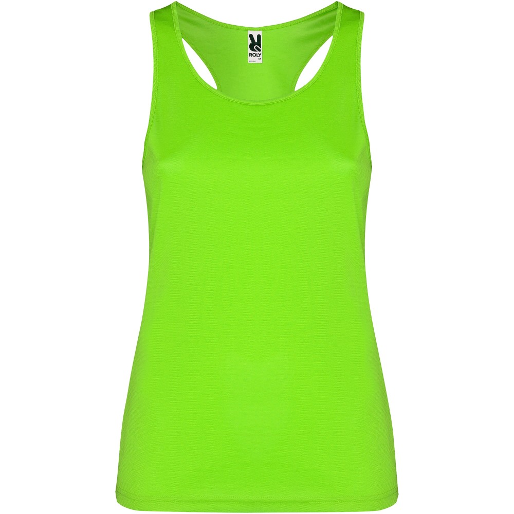 Technikai, légáteresztő, könnyen mosható és gyorsan száradó anyag. Bordázott karkivágások és nyakrész. Racerback kialakítás és oldalvarrások. Eltávolítható címke. 100% Polyester, 140 g/m2.